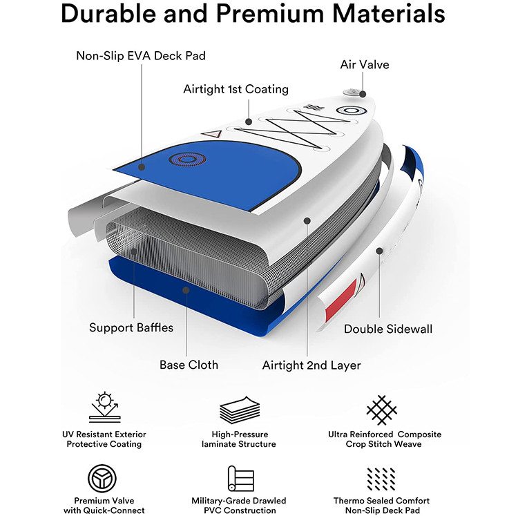 : Se hacen de un PVC que utilice algo “construcción llamada de la puntada del descenso” que cuando consigue inflada consigue muy rígido, similar a un tablero de paleta de epoxy tradicional.